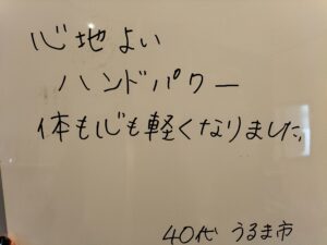 沖縄県うるま市にある看護師アロマリラクゼーションサロン SUAVIS です♪ ★お客様の声★メニュー♡アロマトリートメント+ヘッドスパ サロン初体験!当店で男性も施術してくれると知り、ご来店されました✨ 夜 […]